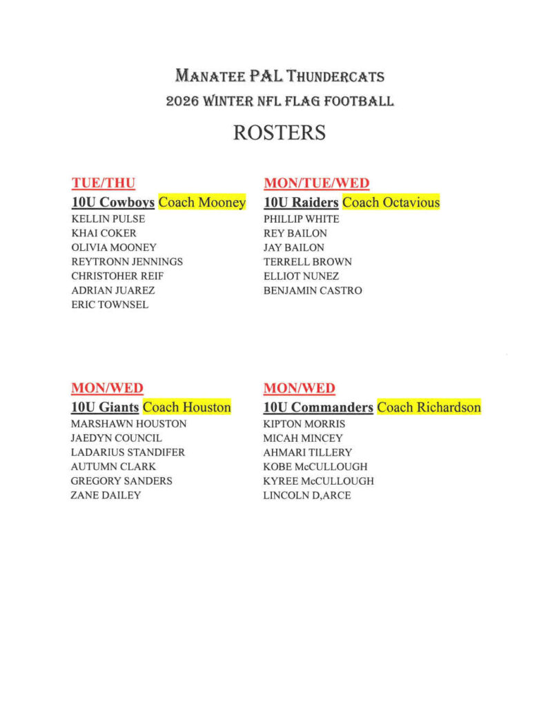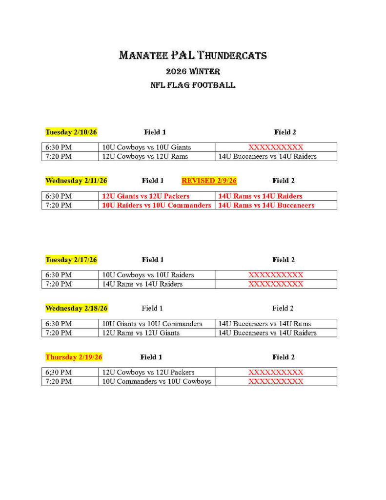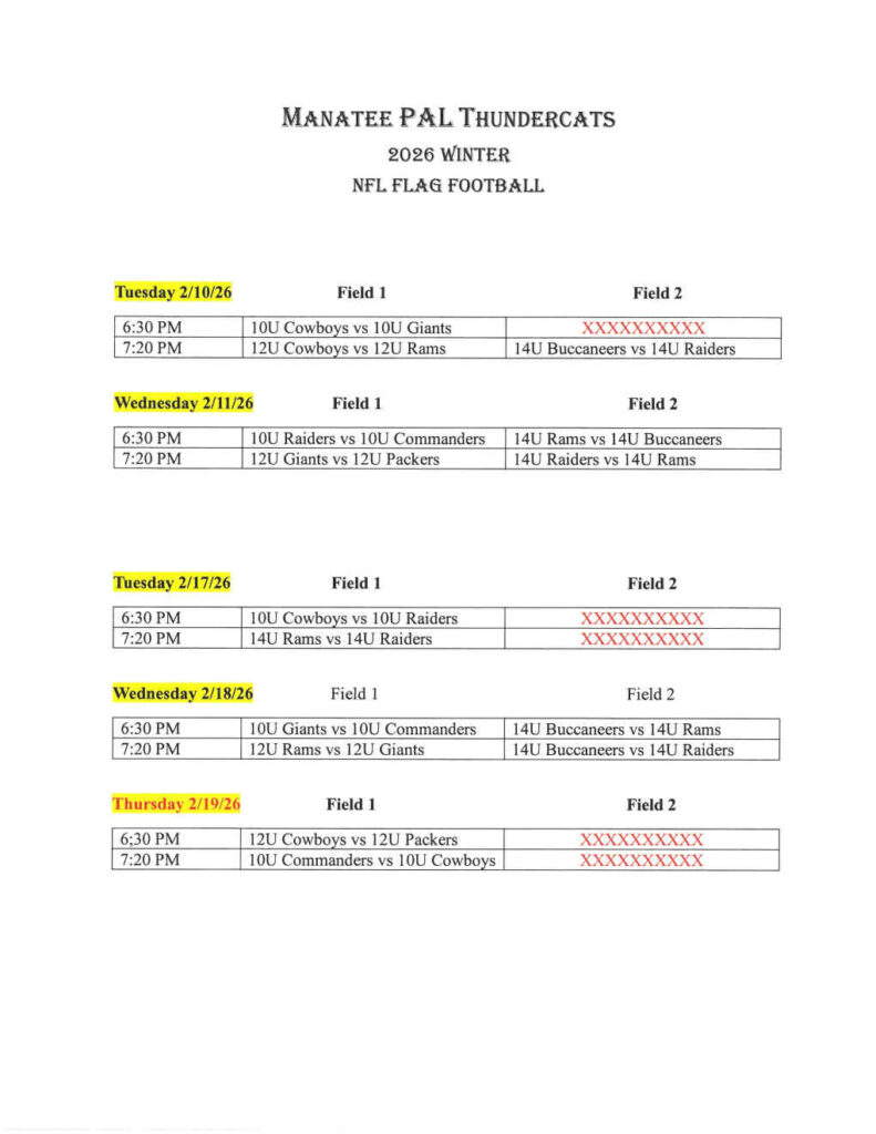 Mark your calendars as Manatee PAL Thundercats start their 2026 winter NFL flag season next week!