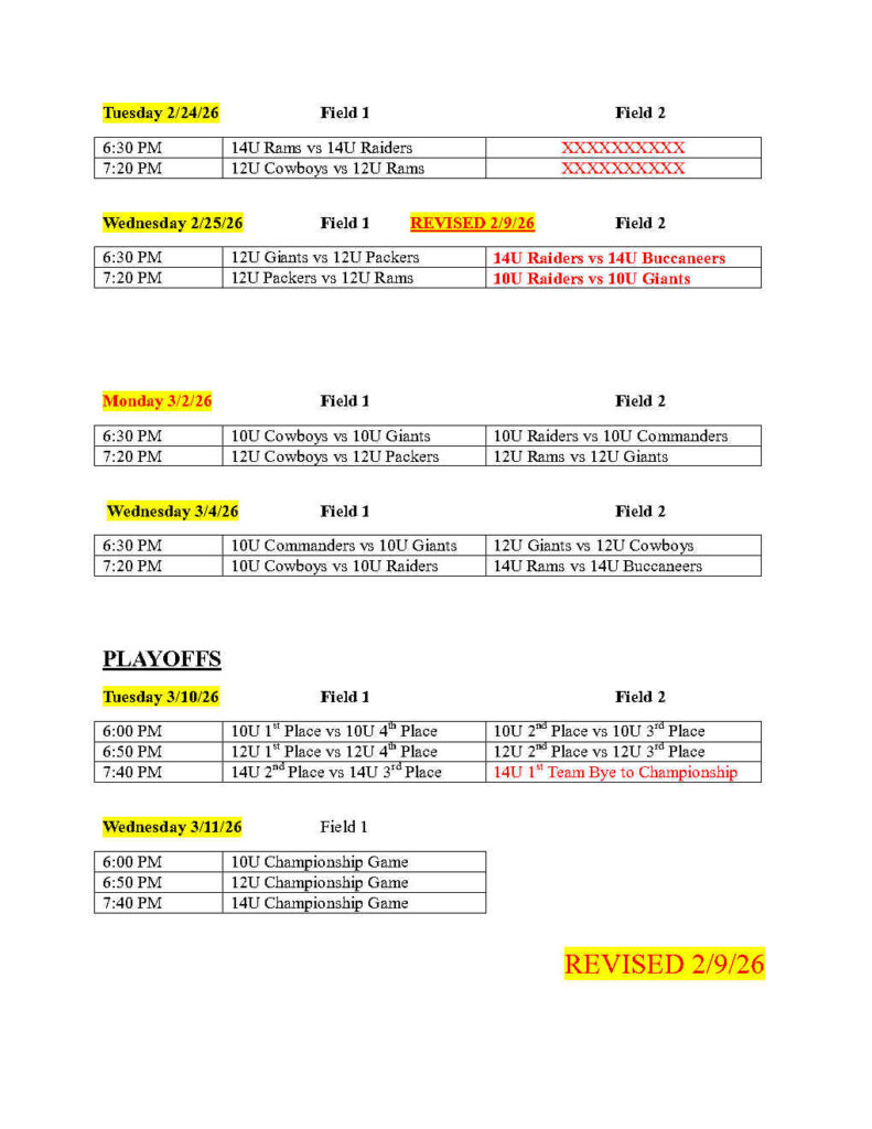 Schedule change for Wednesday 2/11/26 & 2/25/26